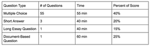Here’s a brief overview of what your test will look like. Again, it looks so similar to the APUSH exam, but that’s how they get you!